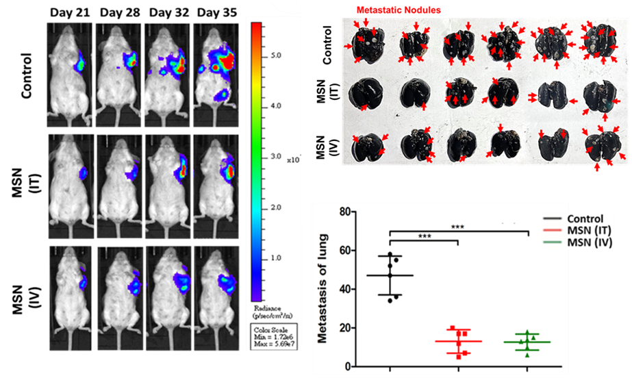 • Metastasis is the leading cause of cancer-related mortality. The unique anti-metastatic activity of MSNs offers a promising approach to inhibit cancer metastasis, thereby prolonging overall survival.