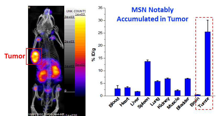 • NTT’s small-sized (30 nm) and ligand-free MSNs with customizable properties facilitate specific tumor targeting through the enhanced permeability and retention (EPR) effect.