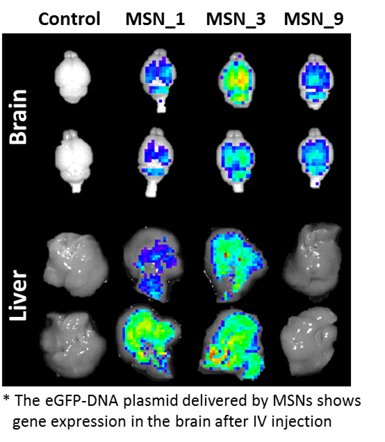 • MSN nanoformulations have the potential to deliver plasmid DNA across the blood-brain barrier, enabling gene expression in brain tissue following intravenous administration.